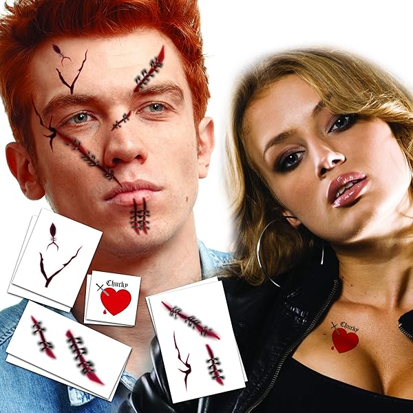 Amazon Com Bride Of Chucky Heart 3 Pack Plus Tiffany Heart Halloween Costume Tattoo Kit Skin Safe Made In The Usa Removable Product Name Beauty Personal Care
